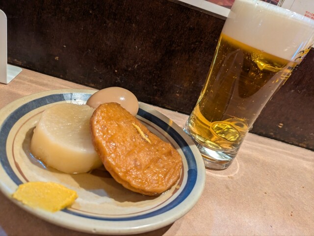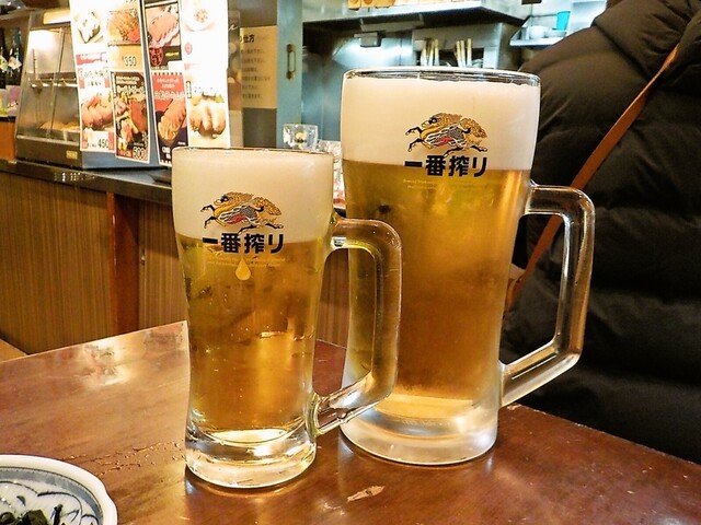 店の雰囲気は、昭和の香り漂う立ち飲み酒場そのもの。1階が立ち飲みスペース、地下(B1F)には椅子のある座れる席もあります。今回は1階...