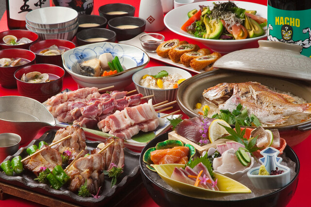 産地直送のお魚や鶏肉・牛肉を使用し、国産備長炭で焼きあげた焼鳥やイロリ焼は絶品! 炭火で焼いた風味と独特の香味をお楽しみください! 飲み放題付コースは5500円! 30名様までご利用頂ける広いお座敷もご用意できます!歓迎会、会社での宴会などの各種宴会にもピッタリ♪