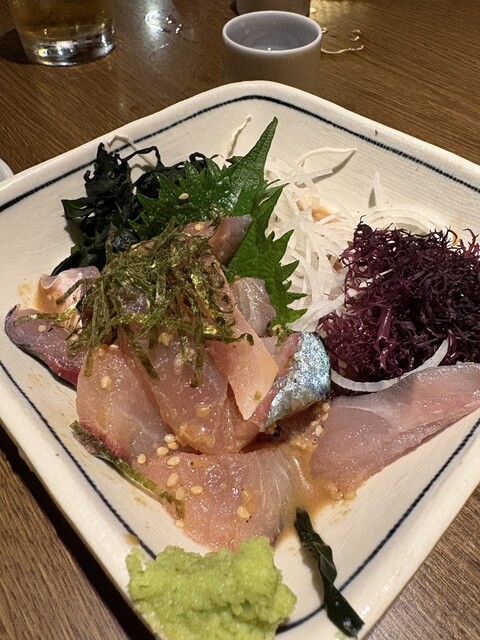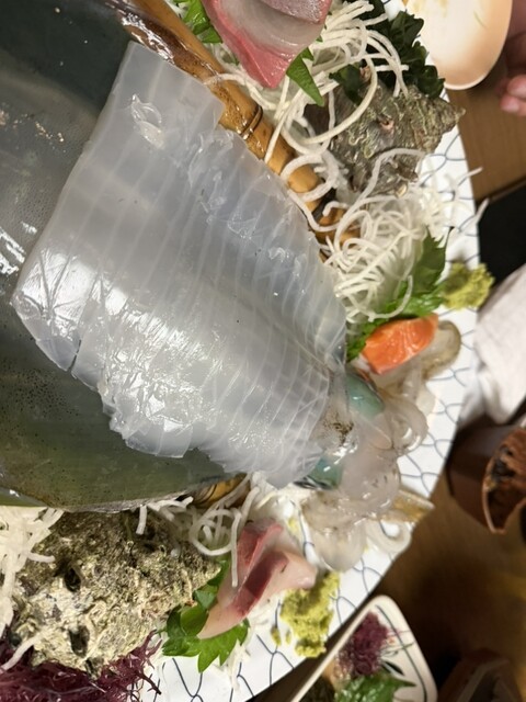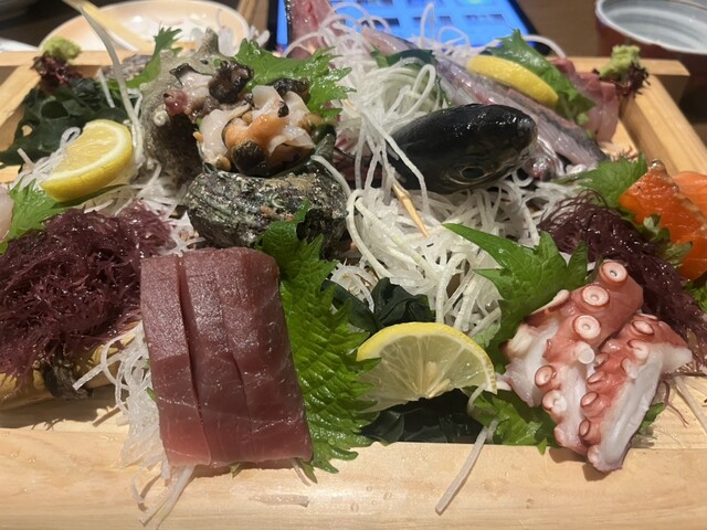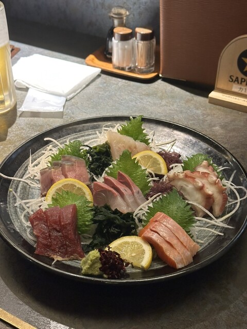 刺身盛り合わせが分厚くて身がしっかりしていてとても満足度高かったです。