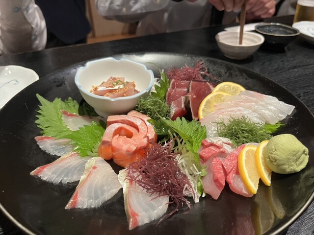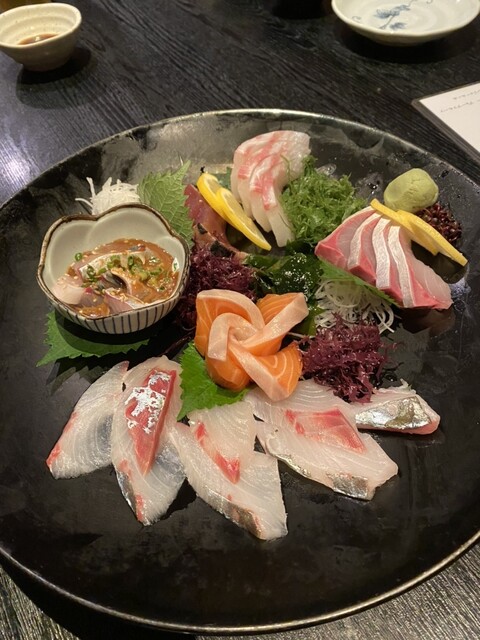 ウルフルズのそんな歌あったね。 会社の人たちと。 セッティングしてもらったから、 メニューとかよくわからないけど、 飲み放題のコース料理。 ◎お刺身盛り ◎... 詳細を見る