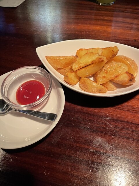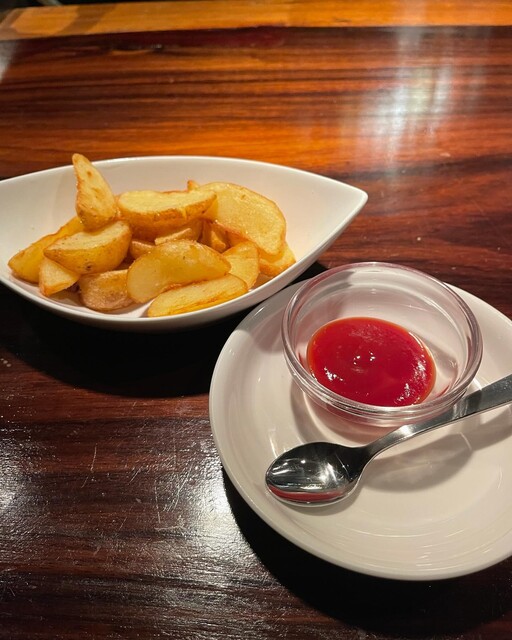 フードメニューから黒毛和牛ハンバーグとポテトフライをお願いしました。
