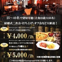 25名様から最大40名様までご利用可能。結婚式二次会や送別会、会社の打ち上げなど様々なシーンでご利用いただけます。生ハムやチーズ、ピザなど軽食付きです。 貸切コースに関しては営業時間外でも受付可能です。(例)日曜日の昼など。ご気軽にご相談下さい。
