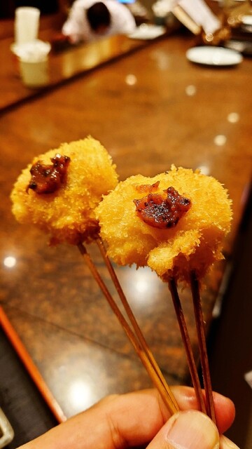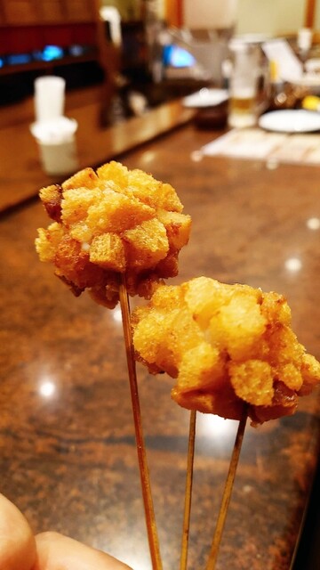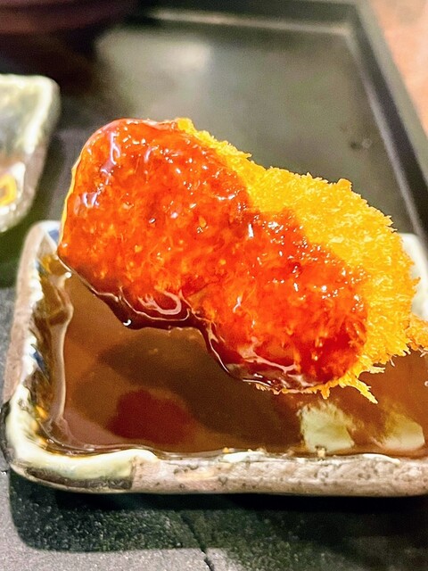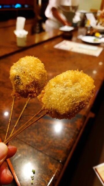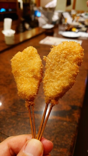 カウンター席のみの店内になっており、スタッフと直接会話も出来るアットホームな雰囲気です。 毎日30種類の串揚げを用意し旬のものを味わっていただくため月ごとにメニュー内容が変わるのでお越し頂くごとに新しい出会いがあります!