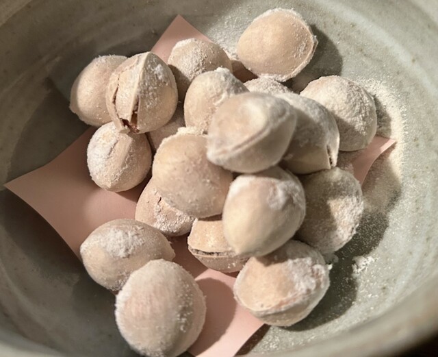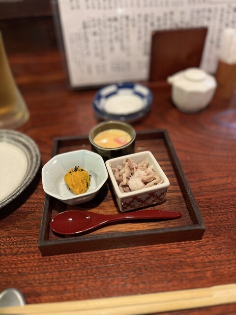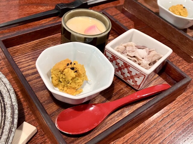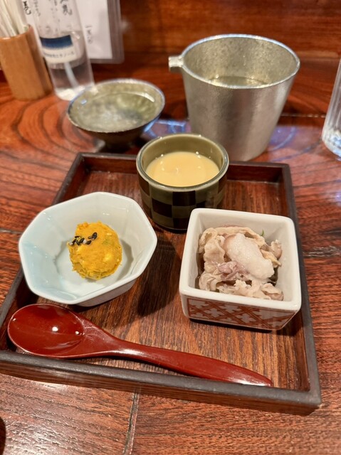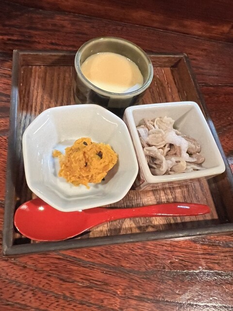 ・お通しは3品。「かぼちゃとくるみ」...