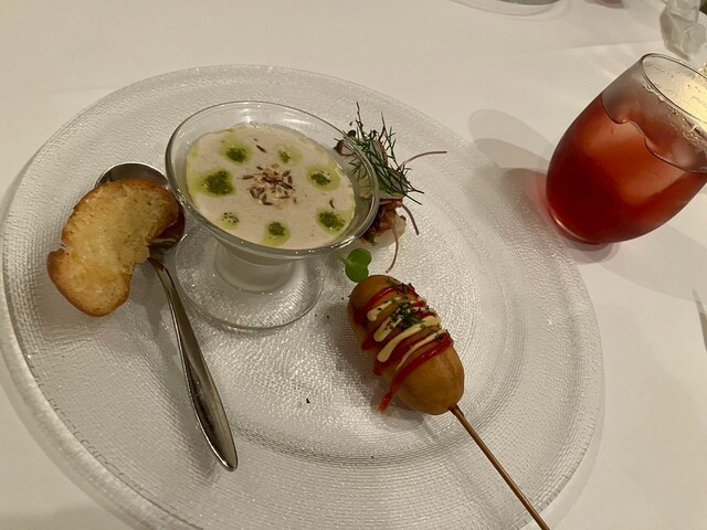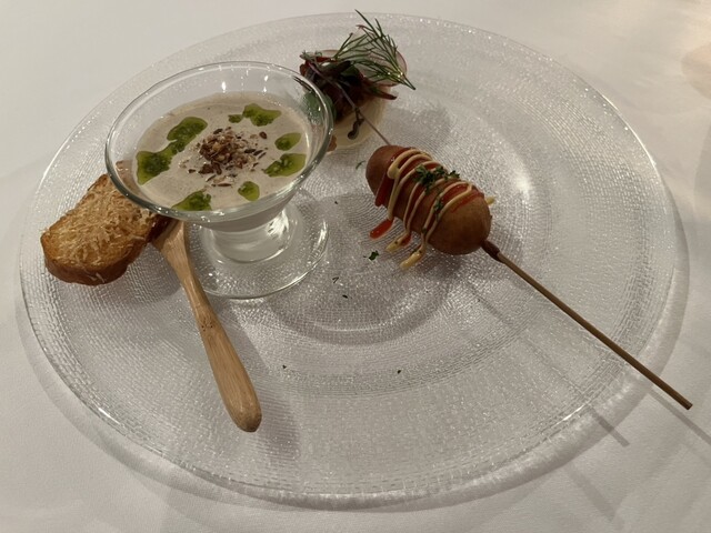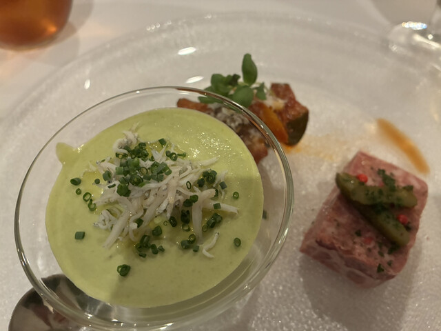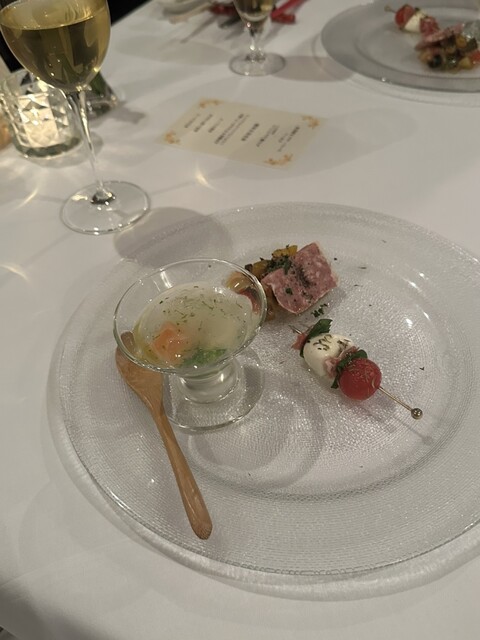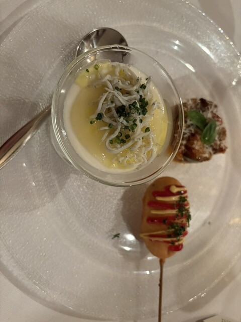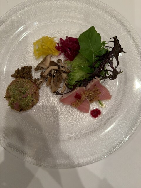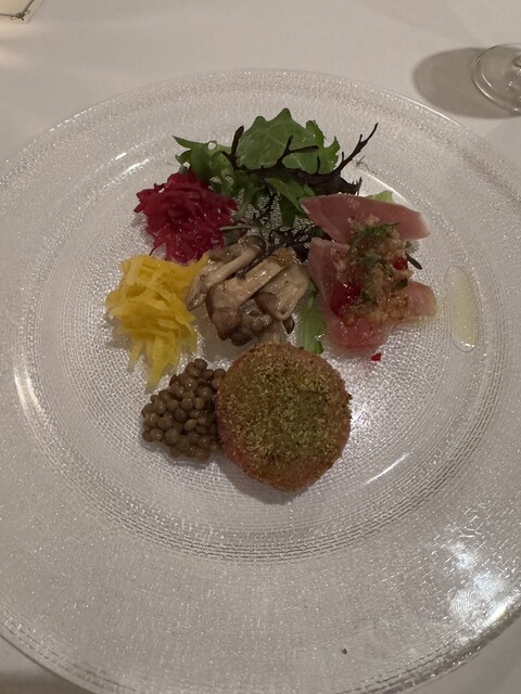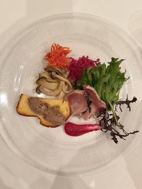 平日午後5時に2人で伺いました。まず案内されたのがウェルカムドリンクのサービスがあり、それだけでこれからの食事が期待できたのですが、想像以上に出てくるお料理が大変美味しくて期待以上でした。前菜、魚介類...