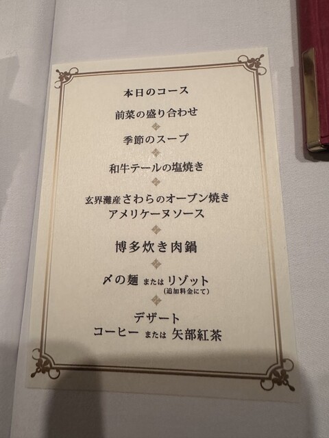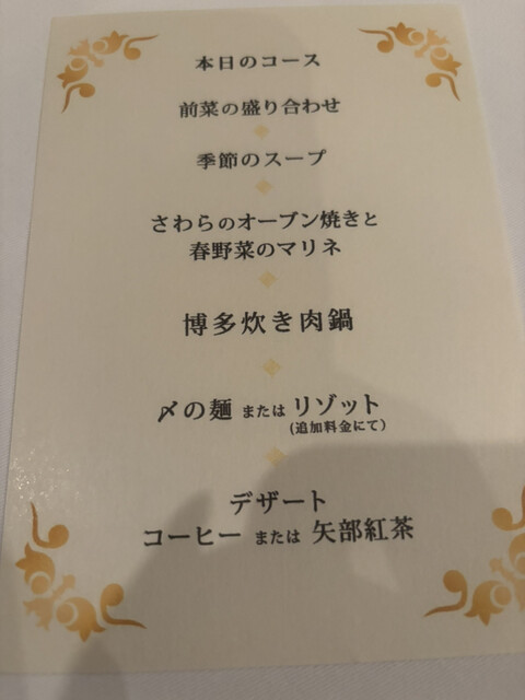 お祝いの席で訪問。生のピアノ演奏も含めて特別感のある空間と接客でした。料理も前菜盛り合わせから美味しくいただけ、名物の炊き肉鍋は絶品でした。ボリュームも十分で締めのリゾットとスイーツの完成度も高く最後...