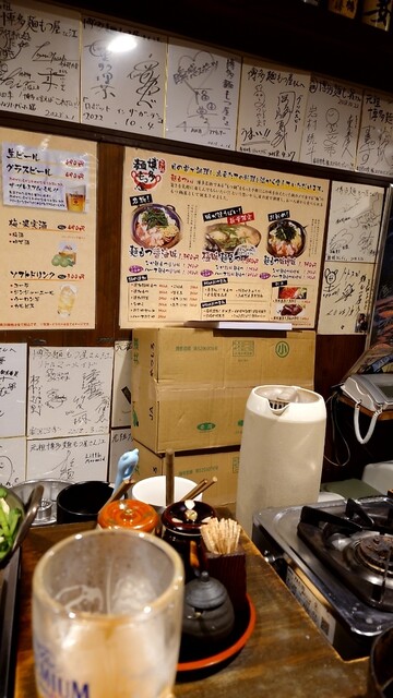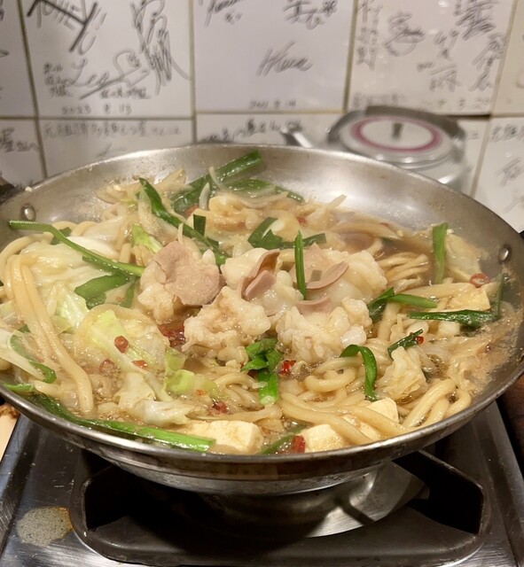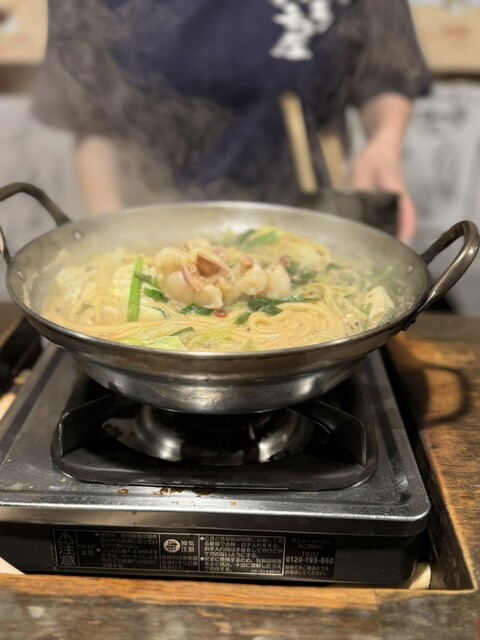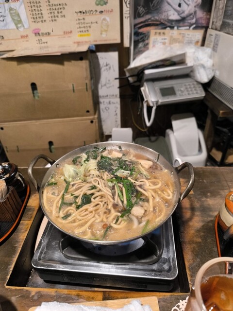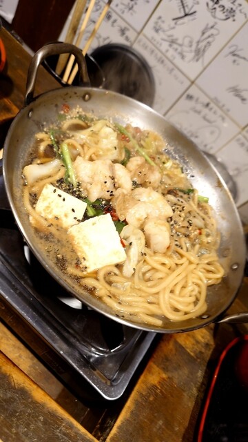 ひとりでも気軽にもつ鍋が味わえるカウンター8席のみの空間。コンロが1席ずつ配されている。特筆すべきは、太麺のちゃんぽん麺が入っていること。締めまで待たなくても、もつ鍋ならではのダシがしっかり染み込んだ麺が味わえる。しょうゆ味とみそ味の2種類の麺もつ鍋に加え50種類以上のプレミアム焼酎を破格で提供!焼酎は400円~用意。一人一鍋、一人もつ鍋専門店です!! 麺もつ醤油・味噌990円 ハーフサイズ790...円