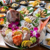 魚屋から直送の新鮮な魚介を使用! 「とんこやだから提供できる長浜直送の新鮮な魚をより リーズナブルな値段でお客様に提供したい。」という 社長の想いから、長年のキャリアをもつ社長自らが 毎朝仕入れ、いつも美味しくて鮮度抜群な魚を提供! とんこや名物豪華刺し盛りと鯛の姿造りが楽しめる 贅沢なコース ※レンコ鯛は仕入れ状況によって鰈等に 変更させていただく場合がございます。 ご了承ください。