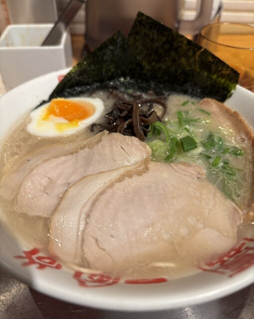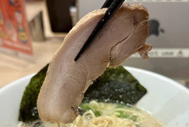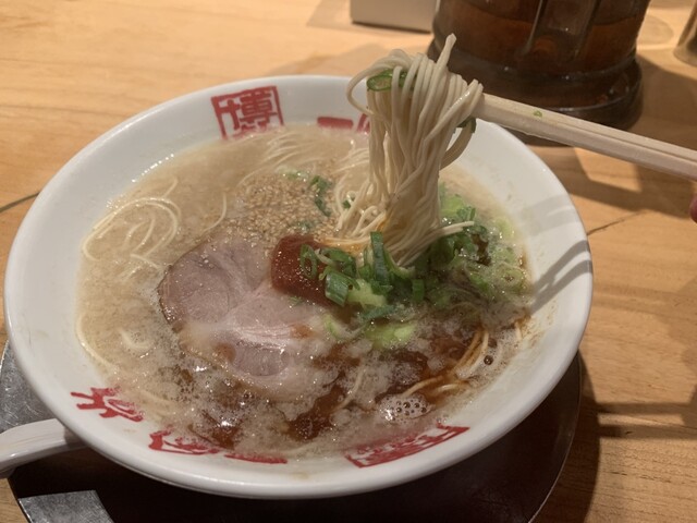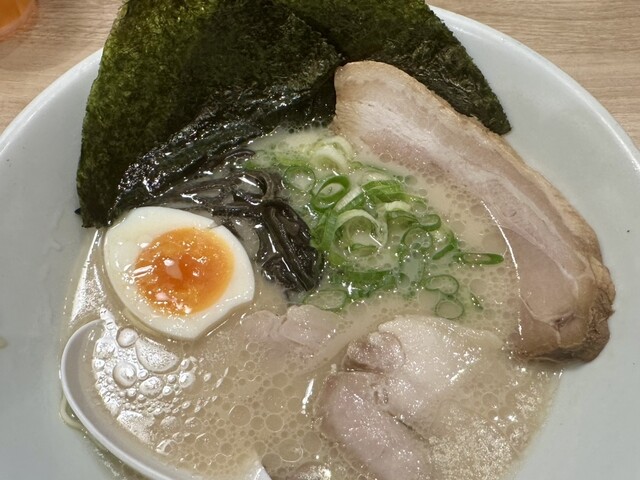 豚骨の旨みいっぱいのマイルド豚骨で、サラッとした白濁の甘味を感じるスープです。