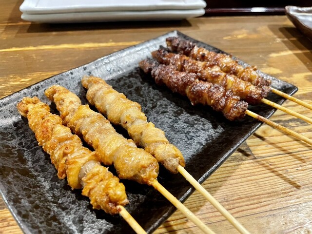 福岡・春吉にある「とりかわ宝家」は、もう僕の中で“ホーム”みたいな焼き鳥屋。 週に3回は通うくらい、ここのとり皮**がクセになるんです。 メニューの主役は、やっぱりとり皮(タレ・塩 各150円)。 外はカリッと香ばしく、中はほどよく脂が残ってジューシー。 一度食べると、他の店のとり皮が物... 詳細を見る