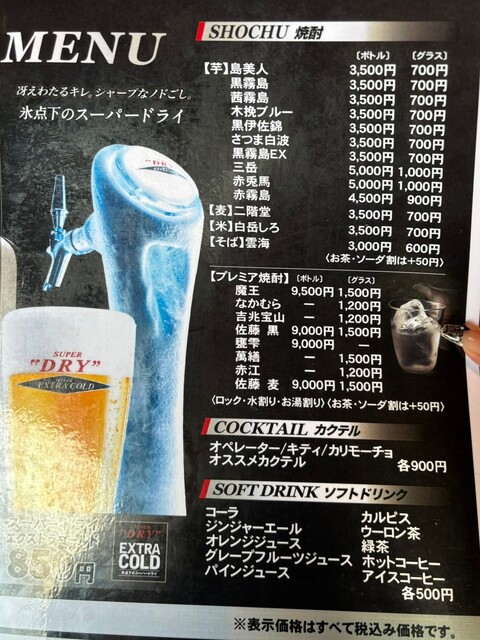 | ドリンク | 日本酒あり、焼酎あり、ワインあり |