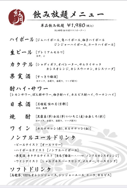 | コース | 飲み放題 |