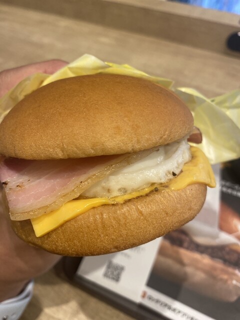 入店してメニューからベーコンエッグチーズバーガー340円をチョイス。コレに、ハッシュポテトドリンクセット200円を追加してドリンクはアイスコーヒーにしました。