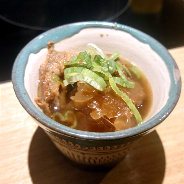 こだわりの出汁を使用したあっさりの醤油味も大ぶりの和牛もつにこだわりのスープが良く絡む…