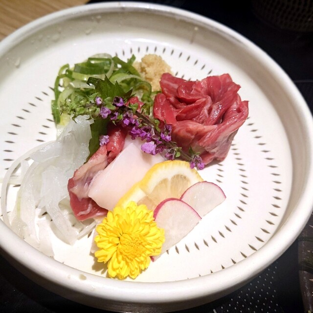 逸品料理は博多名物ごまカンパチ、熊本産”純国産”馬刺し、超希少”馬レバ”…