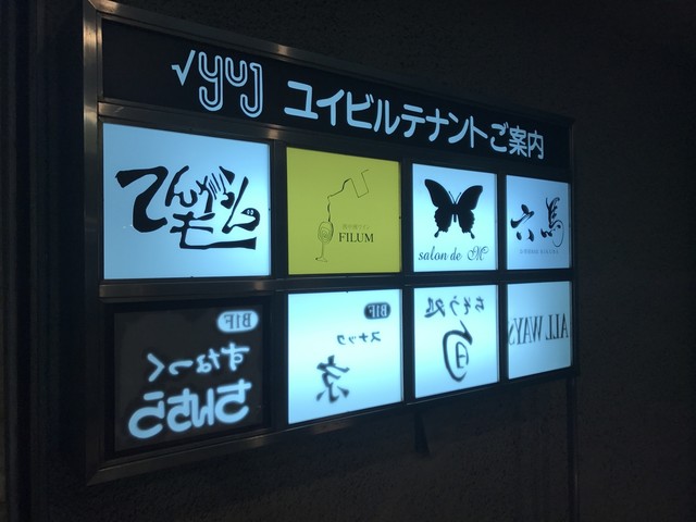 焼鳥・てんがらもん、西中洲ワインFILUMなどがテナントとして入っている、 ユイビルの1Fにある。