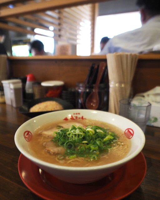 なんとかお昼前に滑り込むことができましたので、待つことなく「豚骨らーめん 焼き飯セット」をいただきました