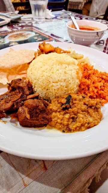 店内は、スリランカの伝統的な装飾が施され、落ち着いた雰囲気が漂っています。全席禁煙で、清潔感のある空間が広がり、女性一人でも入りやすいです。