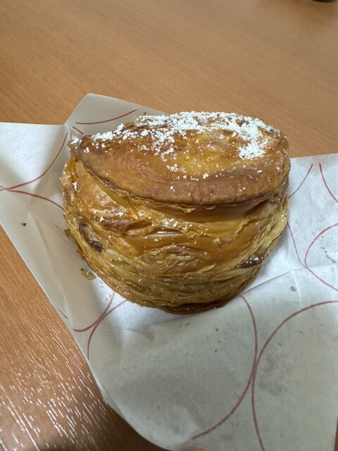 土曜日の16時ごろ訪問!! 並びが15人ほど!かなりの大行列! 15分ほど待ち注文! ◆注文一覧 ①焼きたてカスタードアップルパイ450円 バター風味のパイ生地はサクッサクッとしていて、中には甘いリンゴと濃厚なカスタードクリームがたっぷり入っていて一緒に食べるとめち... 詳細を見る
