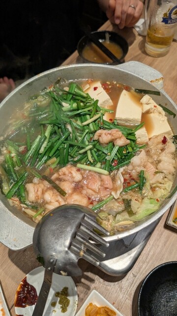 天神 西通りの通り、アップルストアの道路向かい側の二階、三階の店舗 知人曰く、屋号に元祖 モツ鍋と書いており、昭和の名店ということで昔からの老舗で、よく利用されているようでした。 もちろん、売りの商品は山盛りに積まれたニラが印象的なモツ鍋です。 【高く、大きく、安く】という部分をこれが昔のモツ鍋ですよね~思わずこれこれ笑 他、料理部分に関してはほぼ、スピード重視のメニューライン... 詳細を見る