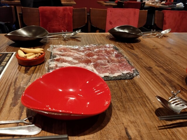 赤と黒を基調にした店内の雰囲気はスペイン気分を味わえ、陽気になれますね。