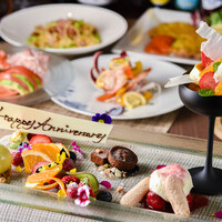 コースの最後にホールケーキ付のアニバーサリープレートをご用意したコース。 お誕生日やご結婚などのお祝い事に最適です♪ ふんだんに揃えた野菜や海の幸・オードブルをお楽しみいただき、メインディッシュは国産和牛の炭火焼きをご準備。