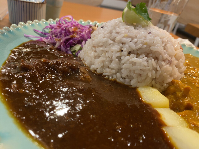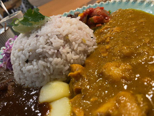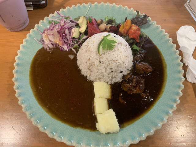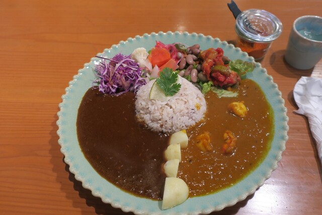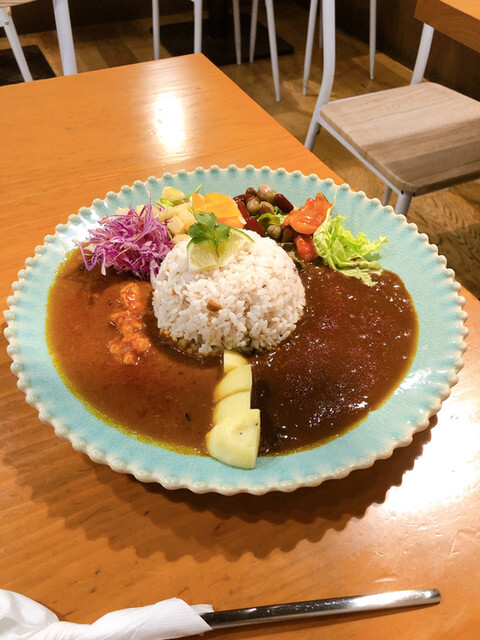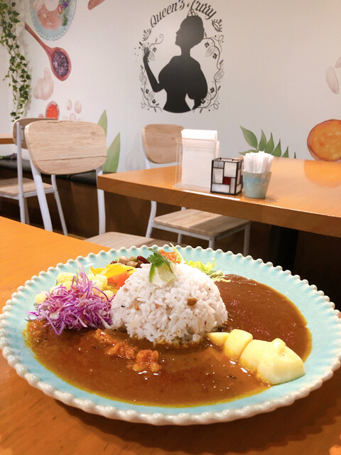 ランチに初めて訪問しました。 店内には雰囲気のある壁のイラスト…清潔感のある店内で…女王さまのあいかけカレーを「オリジナルカレー」と「シュリンプカレー」で少し辛めにしてもらいまし... 詳細を見る