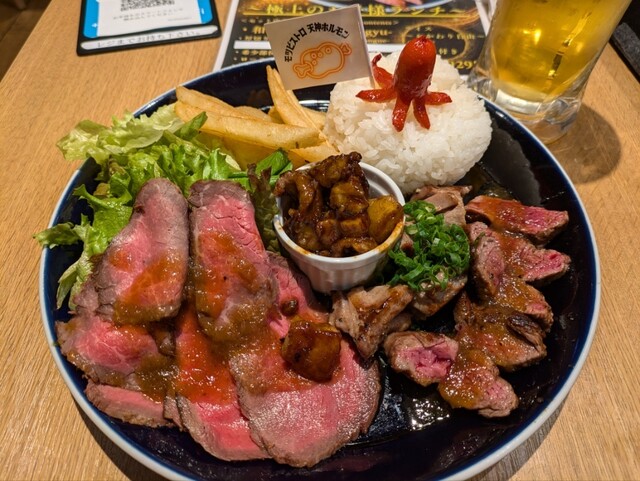 腕自慢の鉄板職人が多彩な肉メニューをご提供! 名物ミックスホルモンや丸腸・サガリの定食はもちろん!『自家製ローストビーフ』『ホルモンアヒージョ』『牛サガリステーキ』etc... グリルからフライドまで、肉の素材を存分に活かした アラカルトがズラリと見参! 飲める定食屋『モツビストロ 天神ホルモン』を 心ゆくまでお楽しみください!!