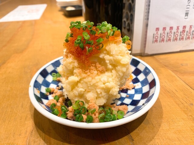頼んだもの ポテサラ ★なめろう ★白子てんぷら ★握り(のどぐろ、鯛、赤身、しめ鯖、梅肉たこ、甘海老、石垣貝) クリームチーズ酒盗 茶碗蒸し(チーズ入り)... 詳細を見る
