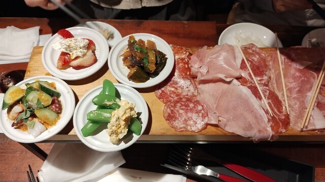 生ハムと前菜盛り合わせは色々食べれるのでおすすめです(^^)