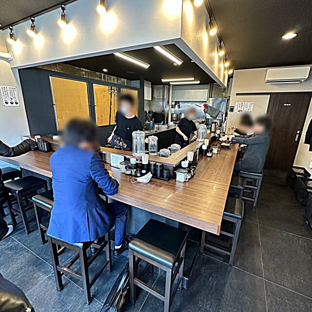 入店するとまずは券売機。店内は厨房を囲むカウンター席のみ。