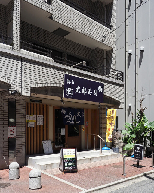 昭和通りから親不孝通りへと入り、ひと区画目の路地にある『博多 太郎寿司』