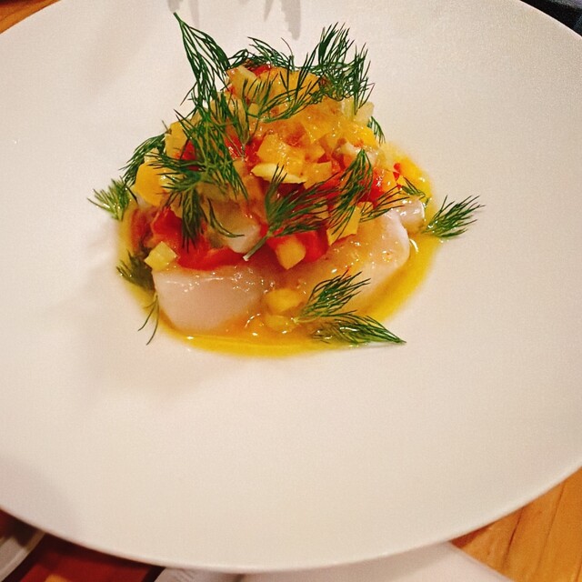 ランチは予約のみとのことでしたので、予約して訪問しました。 【ランチコース(8品) ・・・5,500】を選びました。 ・生ハム、熟成サラミ 初っ端から熟成サラミはチーズ、バケットに蜂蜜の組み合わせ。口に入れて美味しさに感動。 ・カルパッチョ ホタテのカルパッチョとのことでしたが... 詳細を見る