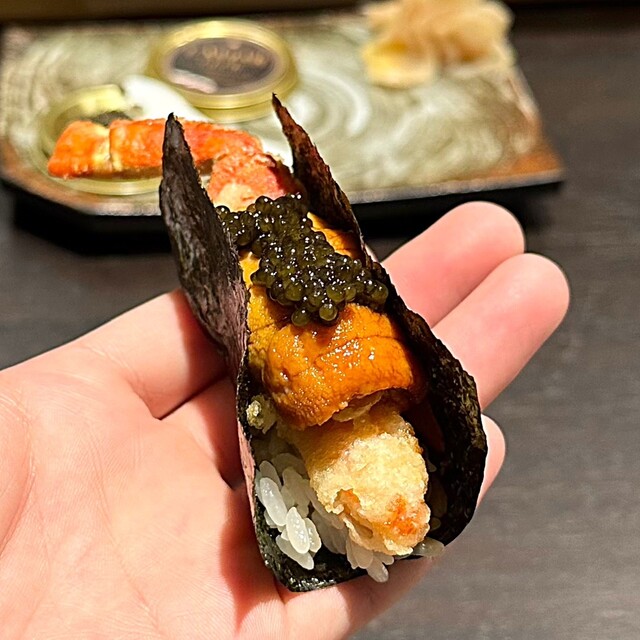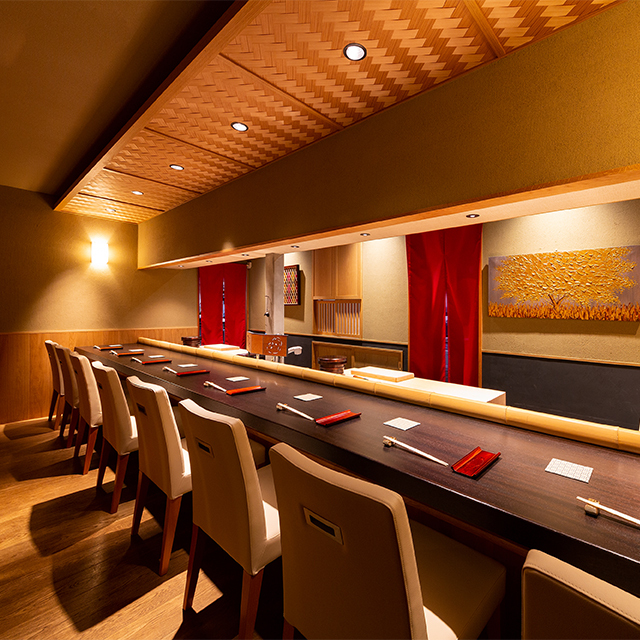 料理長厳選の食材から作る美しい鮨と天ぷらを併せた会席コースをぜひお楽しみください。本格江戸前鮨とこだわりの和食。火力をまめに調整しながら最適な時に油から引き上げることでサクッと小気味よい食感と衣の香ばしさ、的確に火が入った魚介の香りが口の中に広がる。素材、味、彩り、香り、雰囲気、お客様の満足度を徹底的に追及した逸品をご賞味ください。