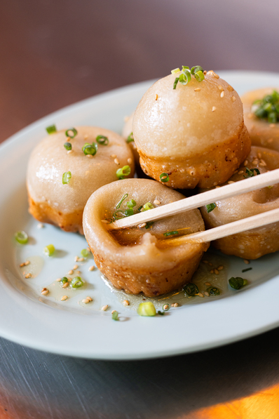 看板メニュー焼小籠包は、モチっとした生地、たっぷりのスープ、カリカリの底面が特徴的なこだわりの一品。他にもスパイスの効いた唐揚げやジューシーなニラ饅頭など、ビールと相性抜群のメニューを多数揃えています♪