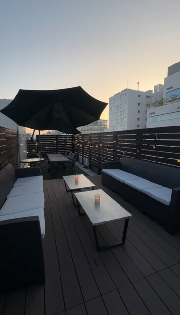 | 空間・設備 | オシャレな空間、落ち着いた空間、席が広い、オープンテラスあり、カラオケあり、ダーツあり、スポーツ観戦可、プロジェクターあり |