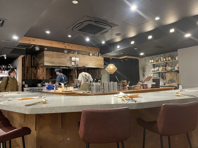 【ライブ感満載の大カウンター】塊肉や旬の食材の炭焼き料理を楽しめるお店。
