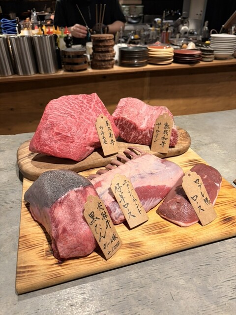熟成肉や熟成和牛タン、ジビエ他、旬の食材を使った炭焼き料理を提供します。