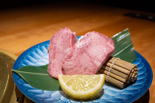 “プリ旨”の「厚切り極上生タン」。こだわりの盛り付けにも注目