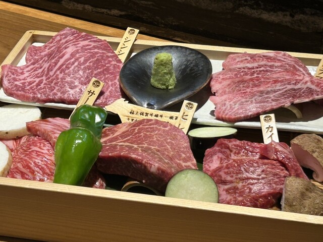 佐賀牛のメスのみを一頭買いし、全部位を余すことなくご提供。長年の経験で培った確かな目利きで選び抜く“本当においしい佐賀牛”を追求しています。名物「肉箱コース」では、生タン盛り合わせなど人気メニューを贅沢にご用意。“プリ旨”食感がたまらない「厚切り極上生タン」や、濃厚な卵黄を絡めて食べる「天使の霜降りすき」も一押しです。店内には夜景の見える個室も完備。落ち着きのある空間でゆったりとお過ごしください。