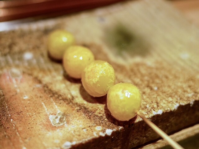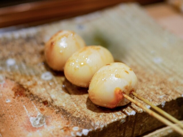 使用する押岡地鶏は、生産者と話し合い飼育日数からオス・メスそれぞれこだわって選定。旨味凝縮のために熟成させ、美味しさと切れの良い味わいを他の鶏と別角度で仕上げていく。日々の繰り返しの仕込みの中でより美味しい焼き鳥を目指し研鑽し、普段使いとはまた違った『焼き鳥』というジャンルを感じて欲しい。