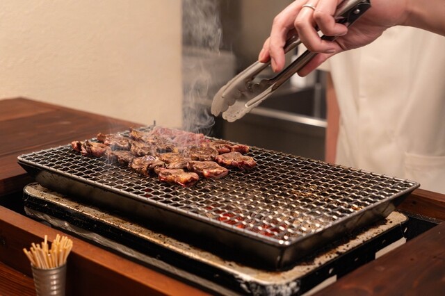 昭和の建物を改装した温かな空間に、炭の香りがふわりと漂う。