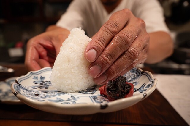 締めは山之口仕込みのおにぎり。ふっくらとした米の香りが、夜の余韻をやさしく包む。