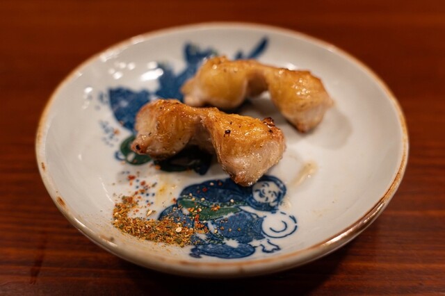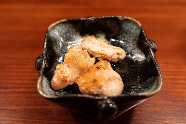 炉端の真骨頂、鹿児島・知覧どりの炭火焼き。鶏とろ、ぼんじり、ざぶとん、もも、それぞれの脂と歯ざわりを炭が引き締める。目の前で焼かれる音と香りもごちそう。