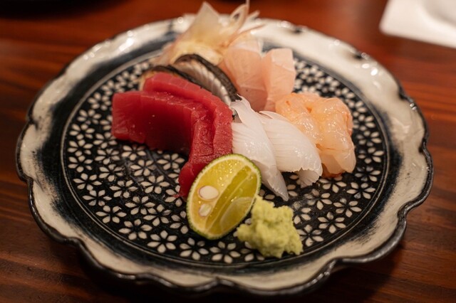 続く刺身は本鮪、イカ、鰆、石鯛、ぼたん海老。切り付けの厚みと鮮度が際立ち、すだちを絞るとそれぞれの輪郭がくっきりと立つ。