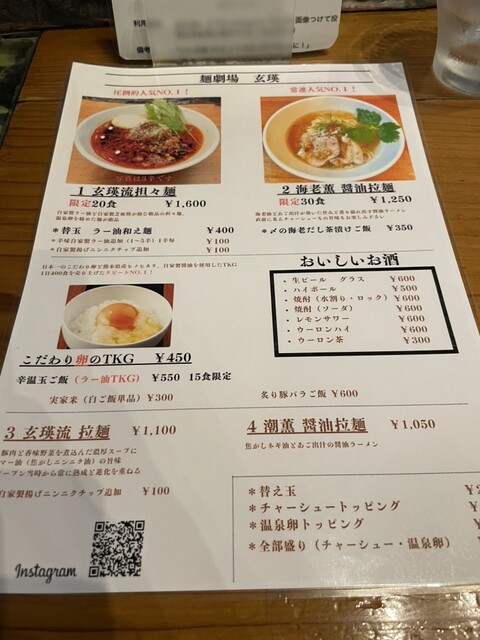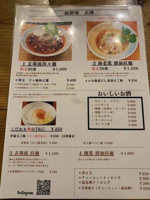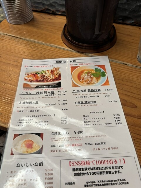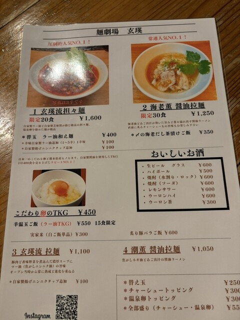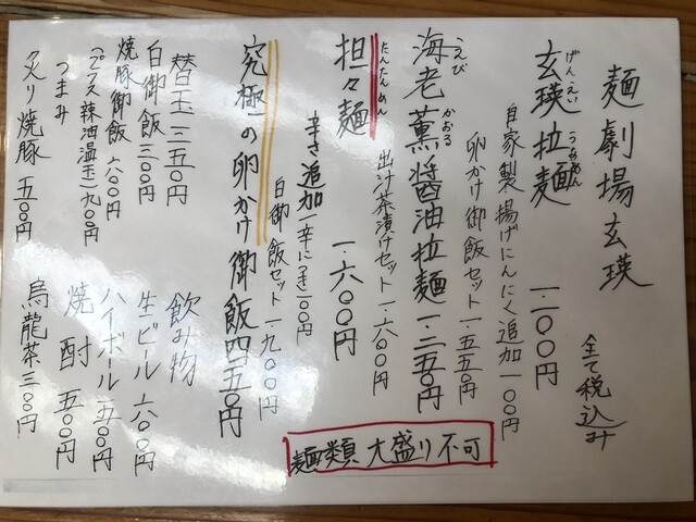 メニューが一新され、長らく定番だった「玄瑛流拉麺」はしばらくお休みとのこと。