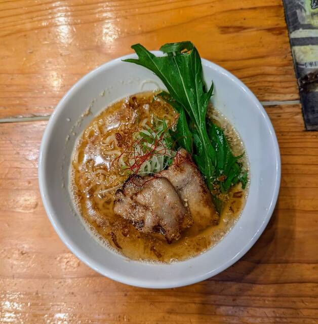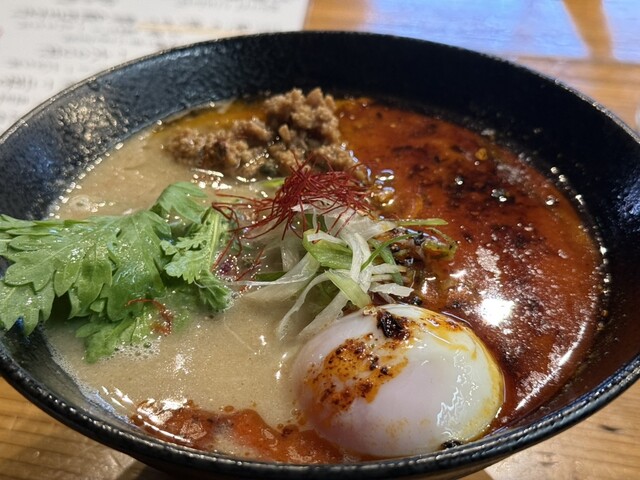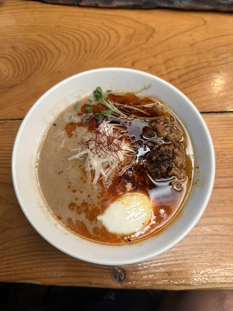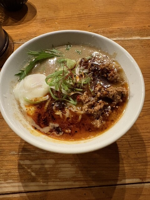 福岡でラーメンといえば豚骨が定番ですが、「麺劇場 玄瑛」さんはその枠にとらわれず、常に新しい挑戦をしているお店です。今回いただいたのは「玄瑛流 担々麺」(1,600円)。見た目から美しく、香ばしいラー油の赤とスープのコントラストが食欲をそそります。程よい辛さに加え、コクと旨みが重なり合い、温玉を崩すとまろやかさが加わって最後まで飽きずに楽しめました。ひき肉の旨味やシャキシャキの野菜のアクセントも絶...