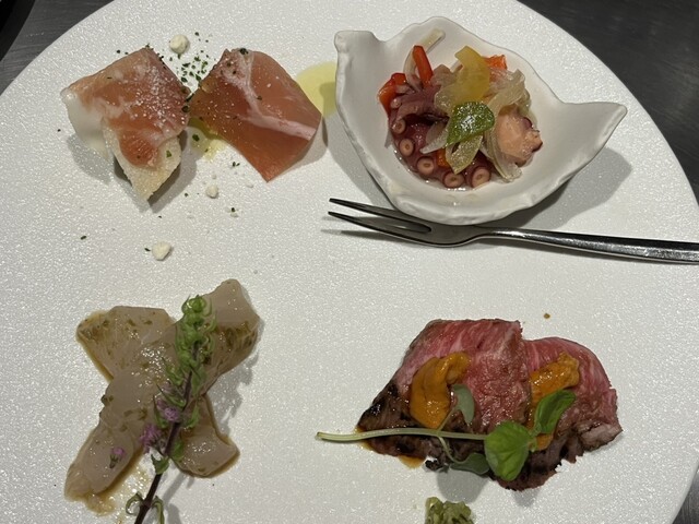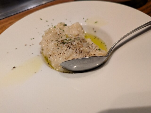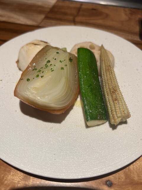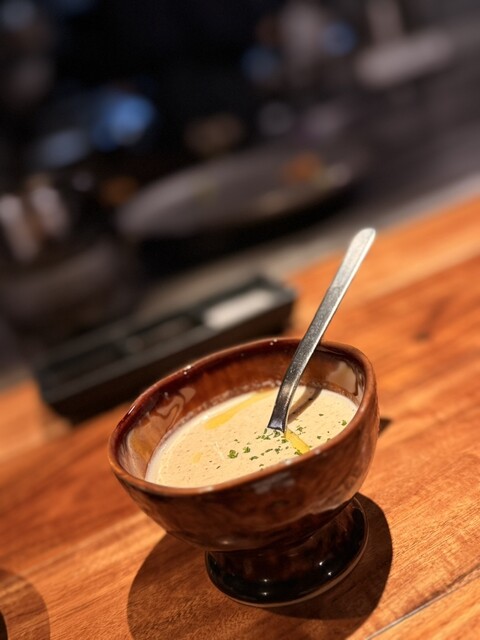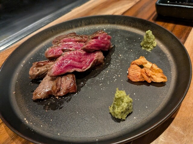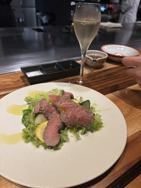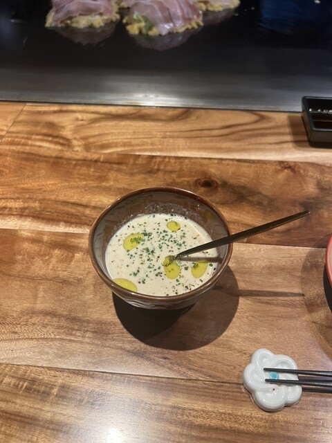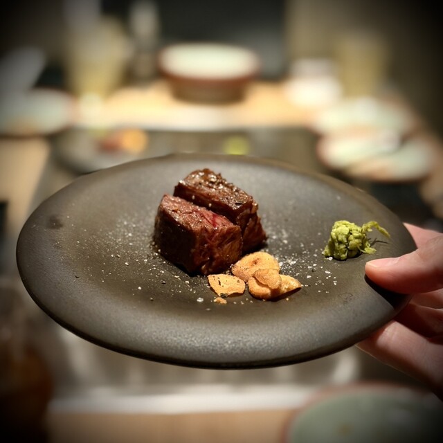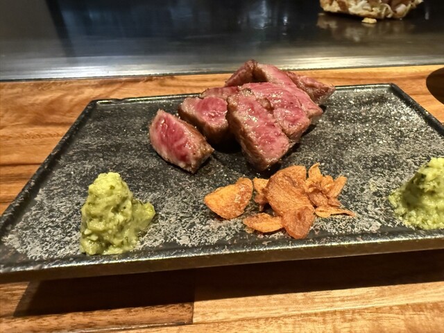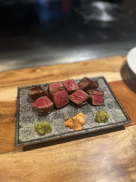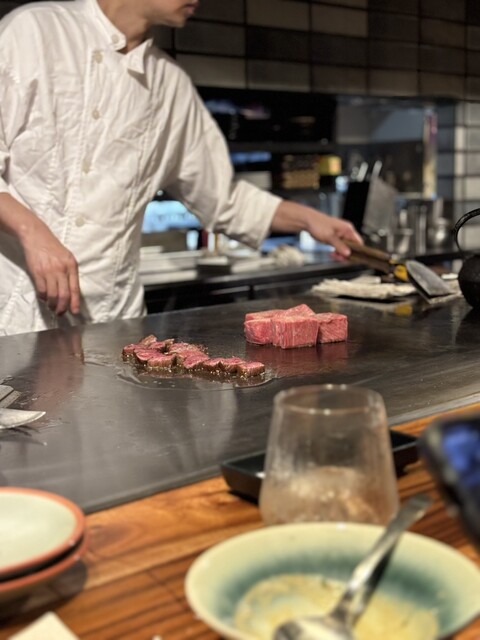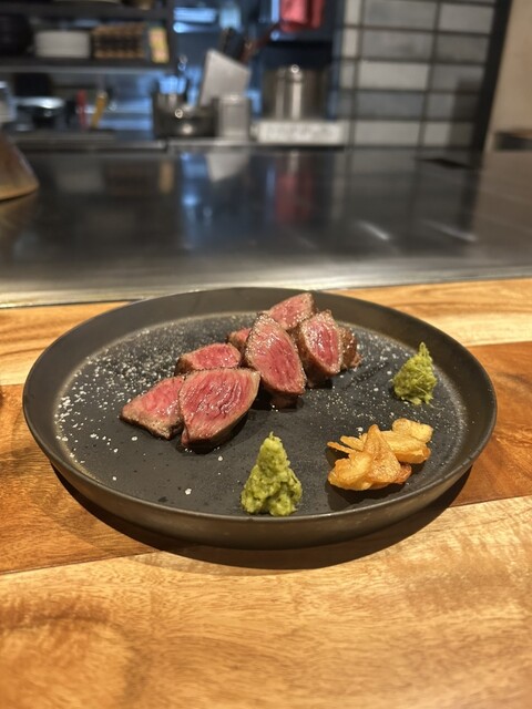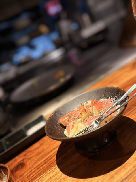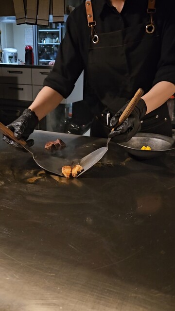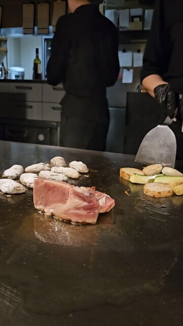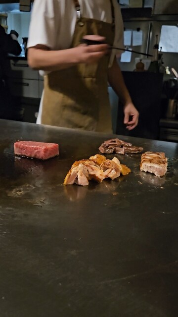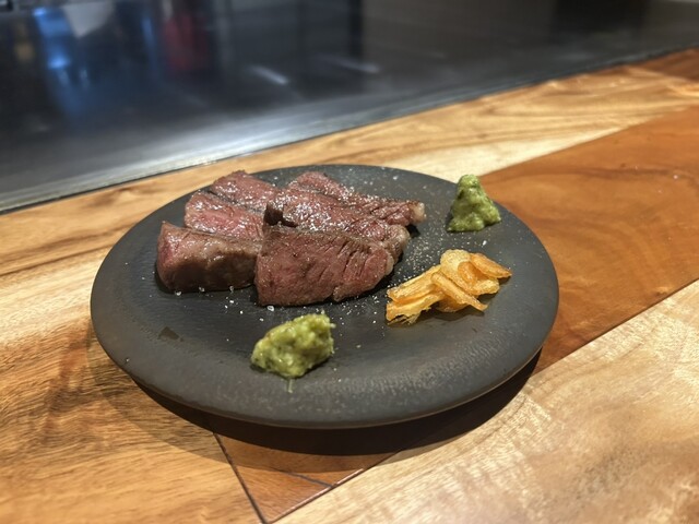 こちらの料理は「時間×温度×素材」をテーマにした独自の鉄板焼き。低温調理や出汁を生かす仕込みが特徴で、