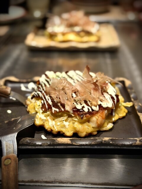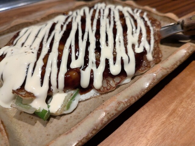 相方が我儘なので鉄板焼きも食べたい、お好み焼きも食べたい、酒のあても欲しいということでリサーチしてヒットしたのがこちら。