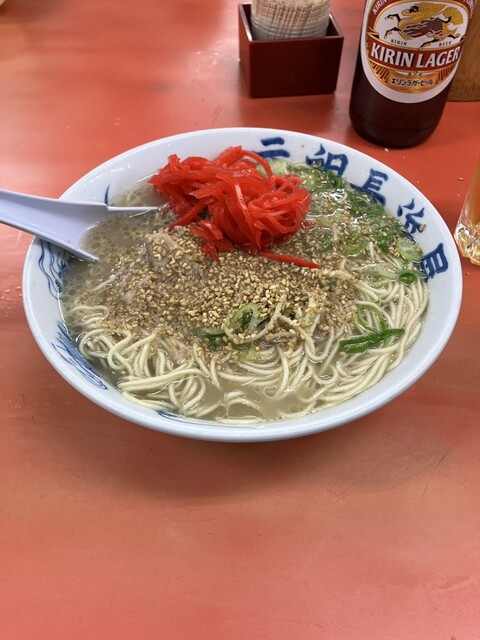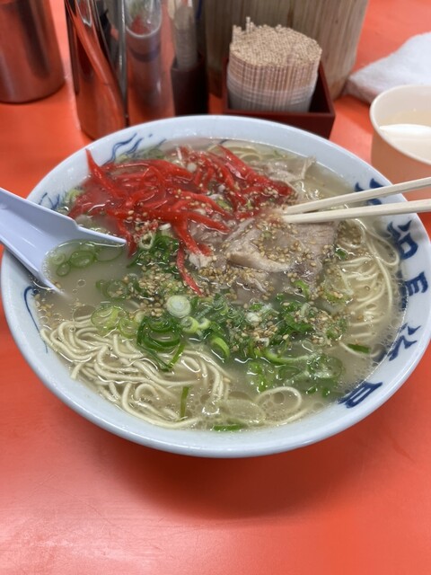 長浜ラーメン発祥店。あっさりシャバスープに塩気強めな肉が美味い